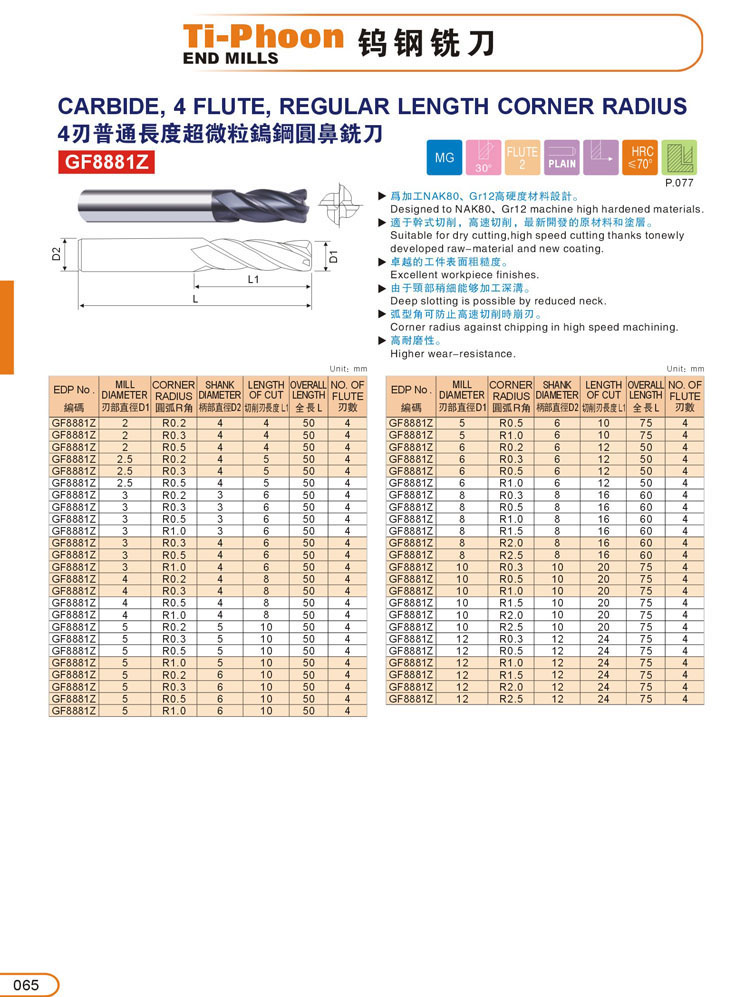 9. 4刃超微粒圓鼻鎢鋼立銑刀065