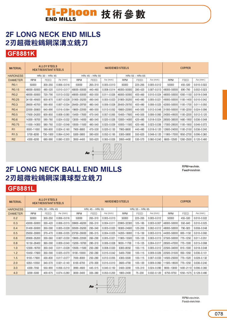 2. 2刃加長超微粒鎢鋼立銑刀058