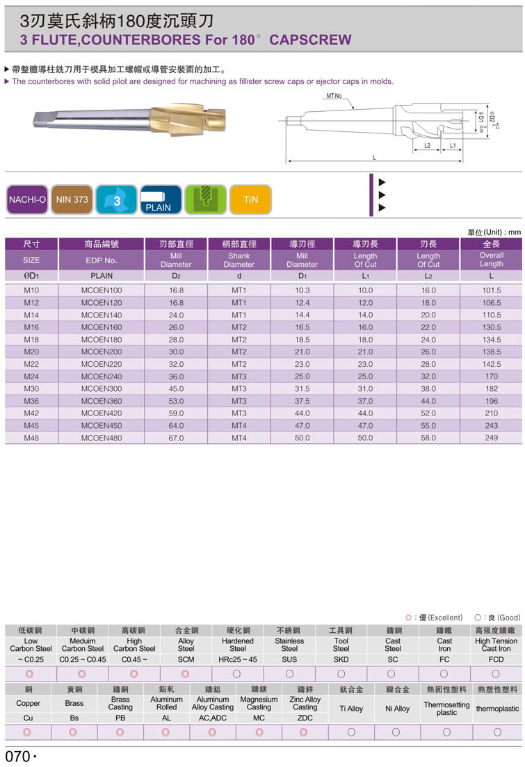 1. 直柄公制沉頭銑刀069