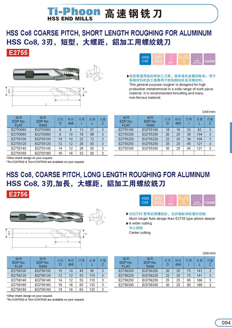 14. 加長粗齒型粗銑刀094
