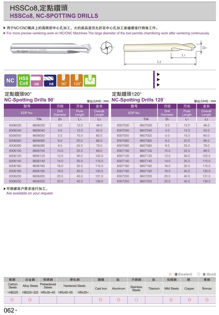 2. NC 90度鍍鈦定點鑽(TiN)HSS CO