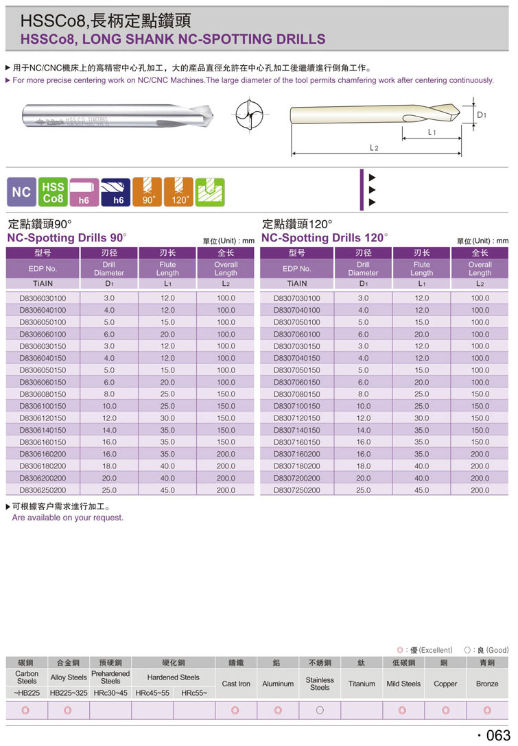NC120度加長(zhǎng)柄定點(diǎn)鑽HSS CO定點(diǎn)鑽(062-2)