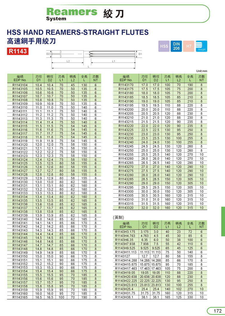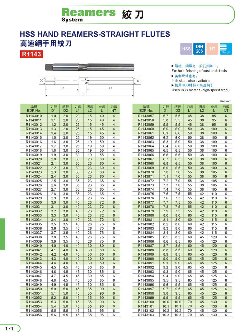 1. HSS手用鉸刀171