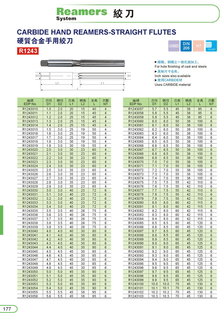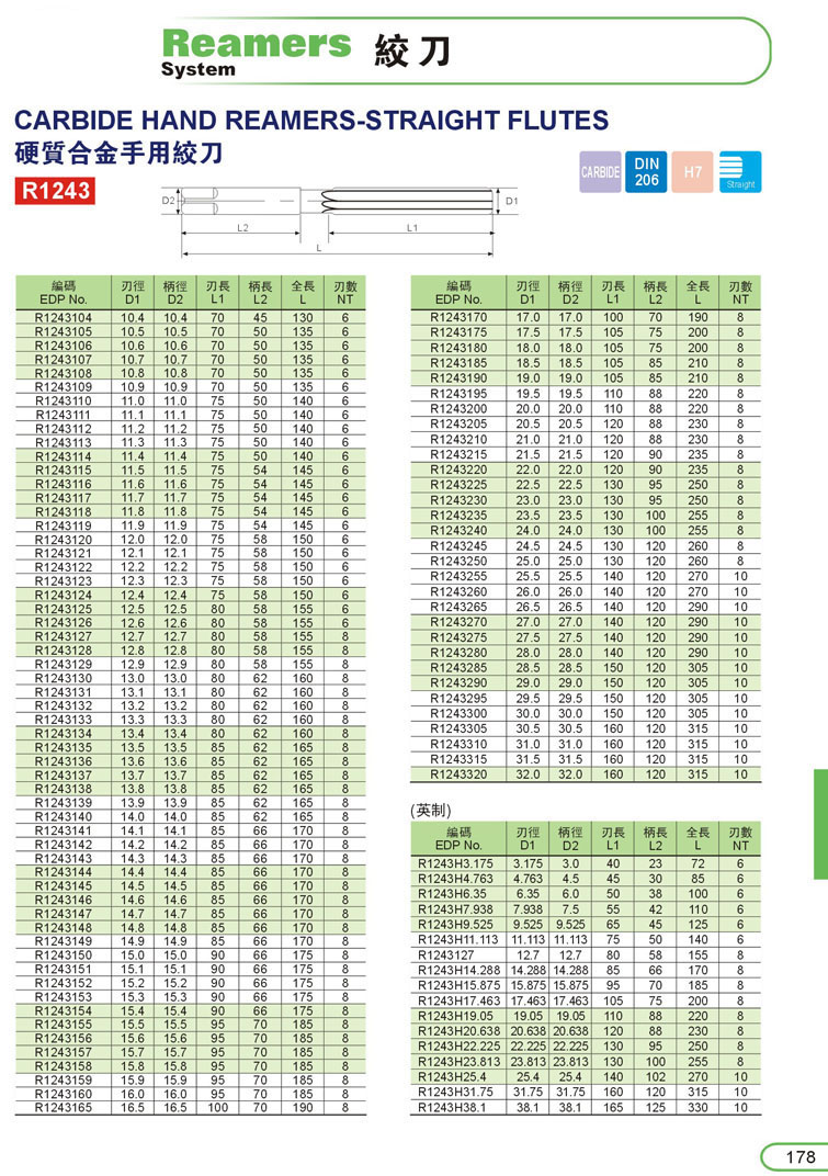 5. CARBIDE鎢鋼螺旋機(jī)用鉸刀179