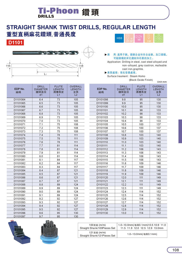 4. HSSCO鍍鈦不銹鋼鑽頭113