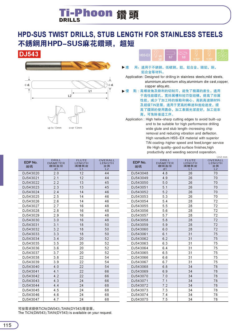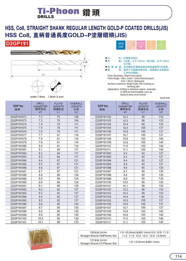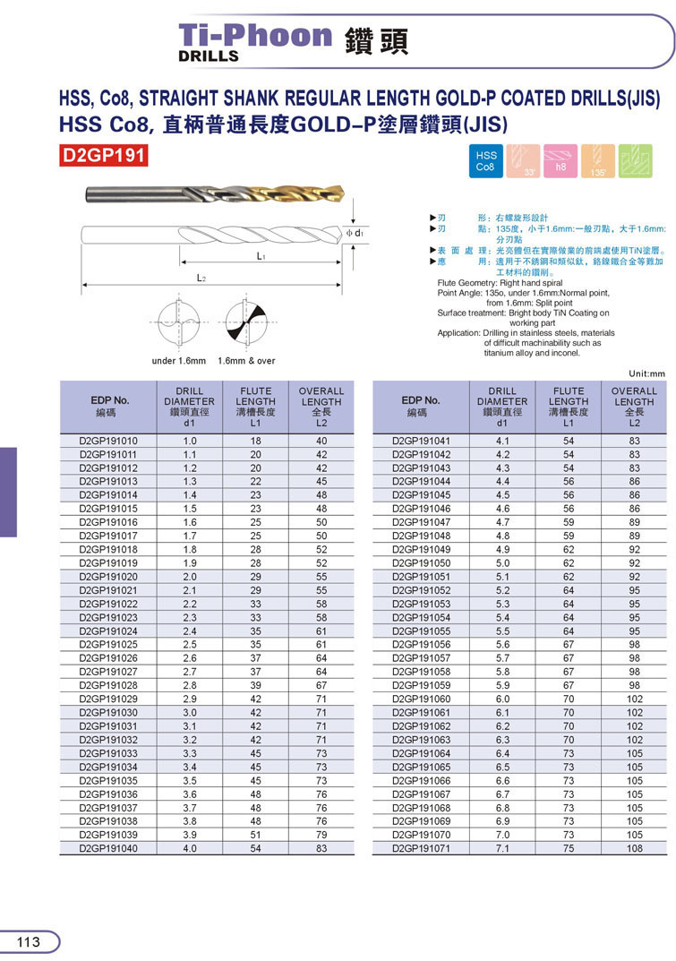 4. HSSCO鍍鈦不銹鋼鑽頭113
