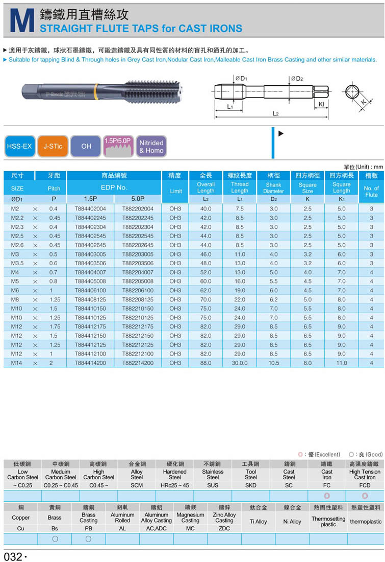 公制鑄鐵直槽機(jī)用絲攻032