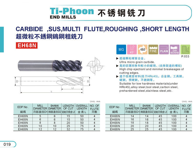1. 4刃不銹鋼立銑刀017