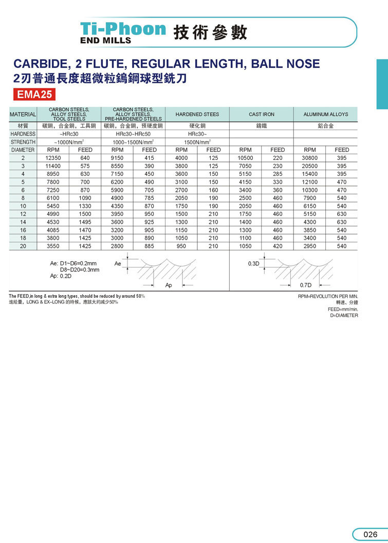 12. 2刃球型超微粒鎢鋼深溝立銑刀012