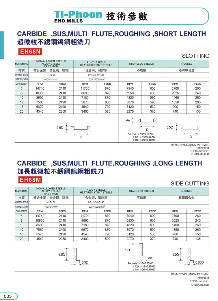 15. 2刃超微粒鎢鋼斜度立銑刀024