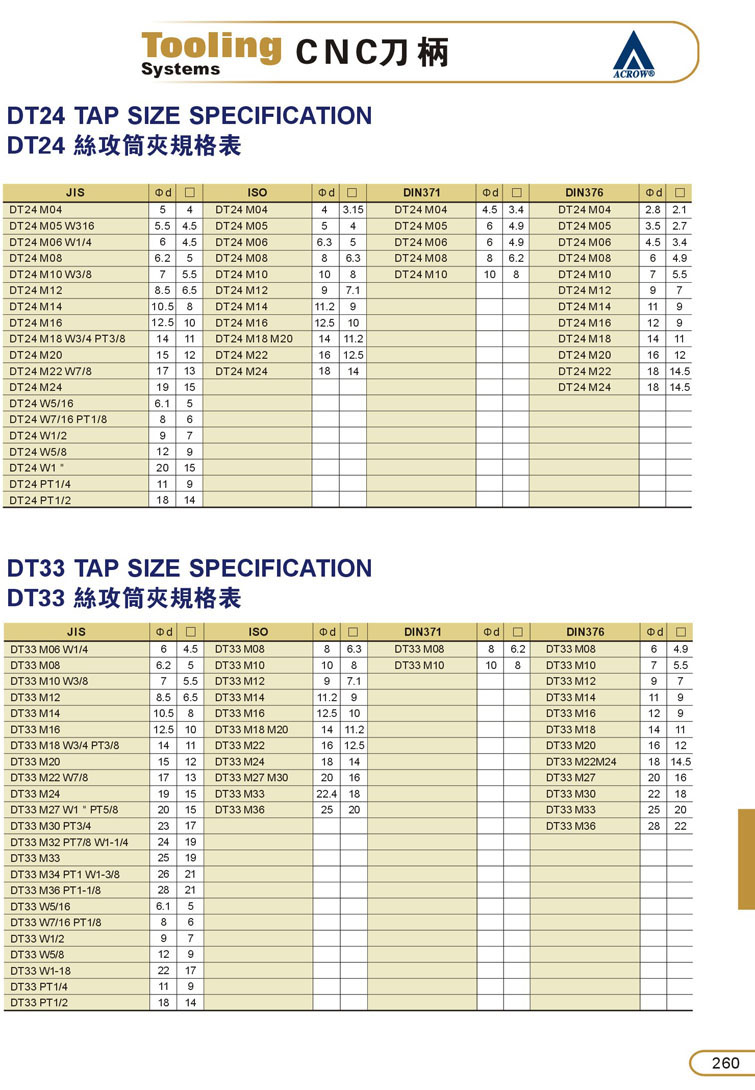 DT24/33鑽床攻牙刀柄259