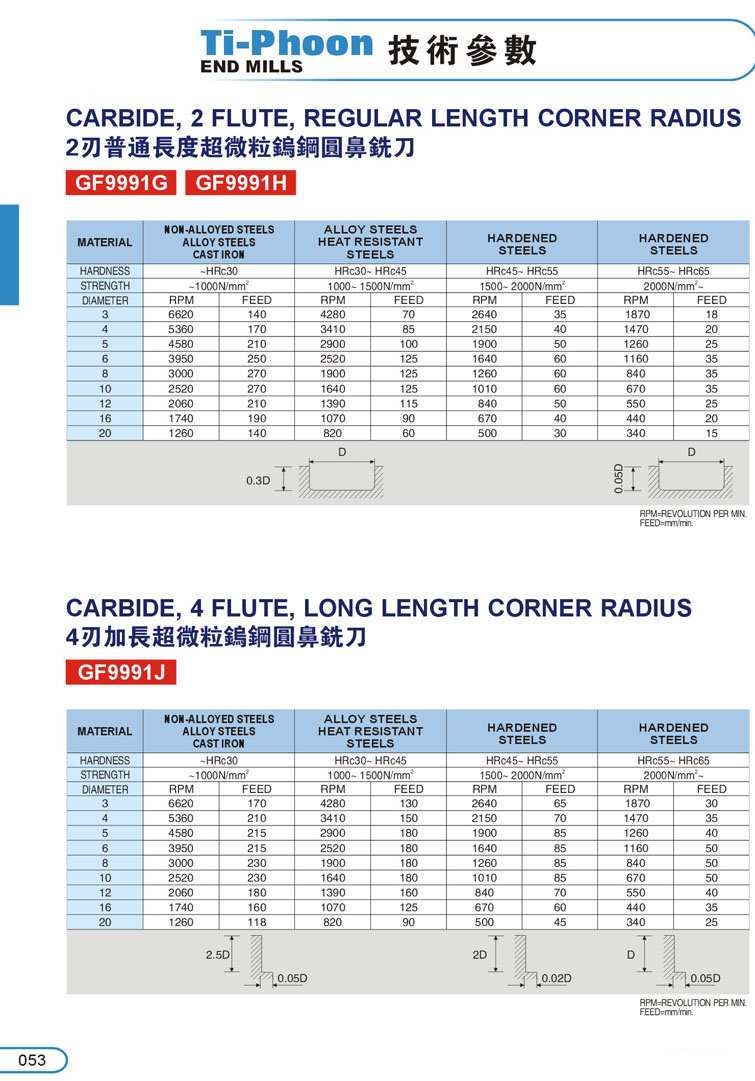 7. 2刃超微粒圓鼻鎢鋼立銑刀041