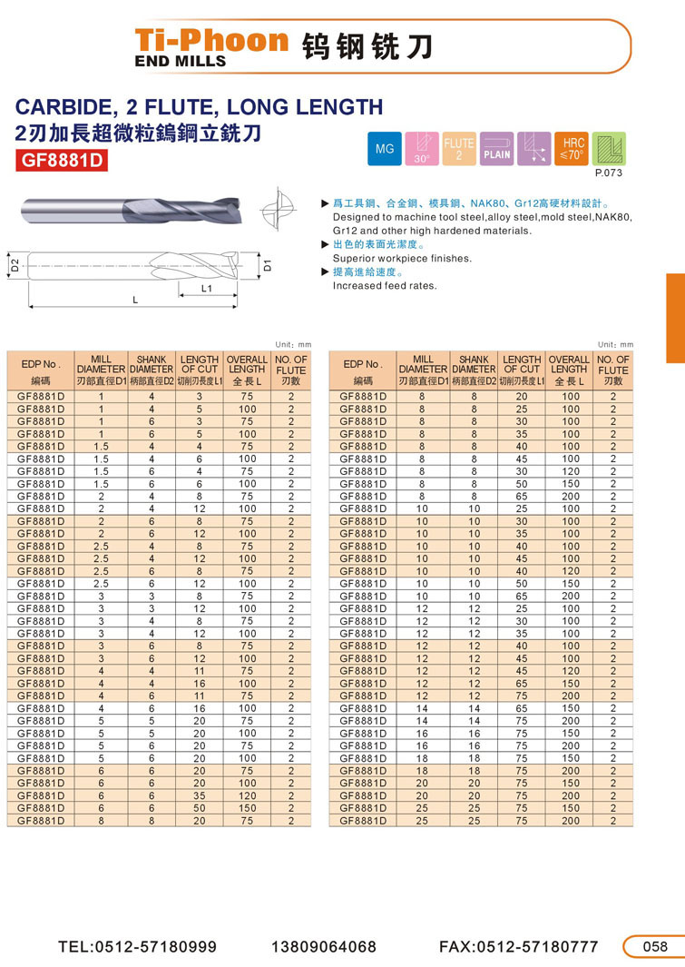 2. 2刃加長超微粒鎢鋼立銑刀058