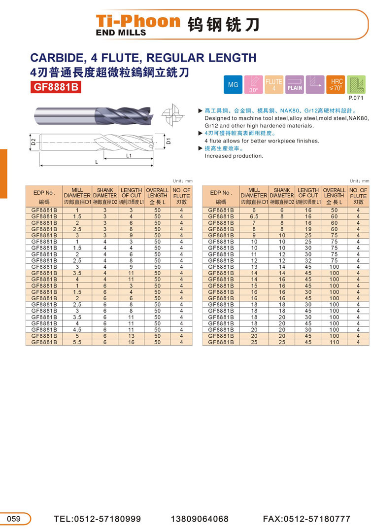 4. 4刃加長超微粒鎢鋼立銑刀060